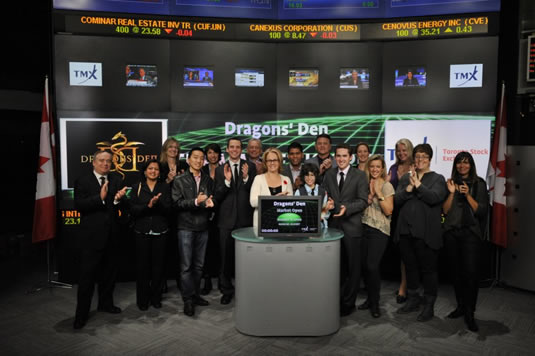 Here be Dragons: The founders of MappedIn, along with the other entrepreneurs who were pitching on the Dragons’ Den student special, opened the TSX on October 31st along with dragons Arlene Dickinson and David Chilton.