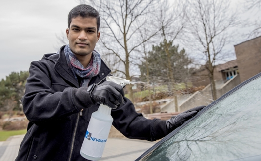 “Frost is a major problem for individuals and businesses daily. Not only is it inconvenient but it has an impact on safety and can even hinder economic activity,” said Abhinay Kondamreddy (pictured above), a nanotechnology engineering graduate who developed Neverfrost along with three classmates.