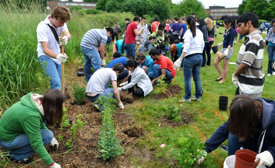 They’re greening the campus. These are some of the more than 300 student leaders from all six faculties who took part in the annual Orientation Leader Conference held on June 25. “For a team-building activity, leaders worked together in small groups to plant more than 175 shrubs and trees,” reports Cora Dupuis, student life co-ordinator, first-year experience. “To see their handiwork, walk along the path to Ron Eydt Village, by Mackenzie King Village. … The rest of the day focused on skill-building and gaining insight into their role as orientation leaders for Orientation 2011.”